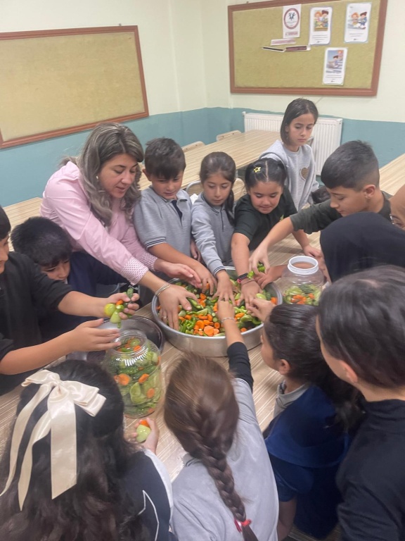 Okulda öğrenilenlerin günlük yaşamla ilişkilendirilmesi amacıyla, 3. sınıf ile 4. sınıf öğrencileri, velileri ve sınıf öğretmenleri ile birlikte keyifli bir turşu yapma etkinliği gerçekleştirdi.